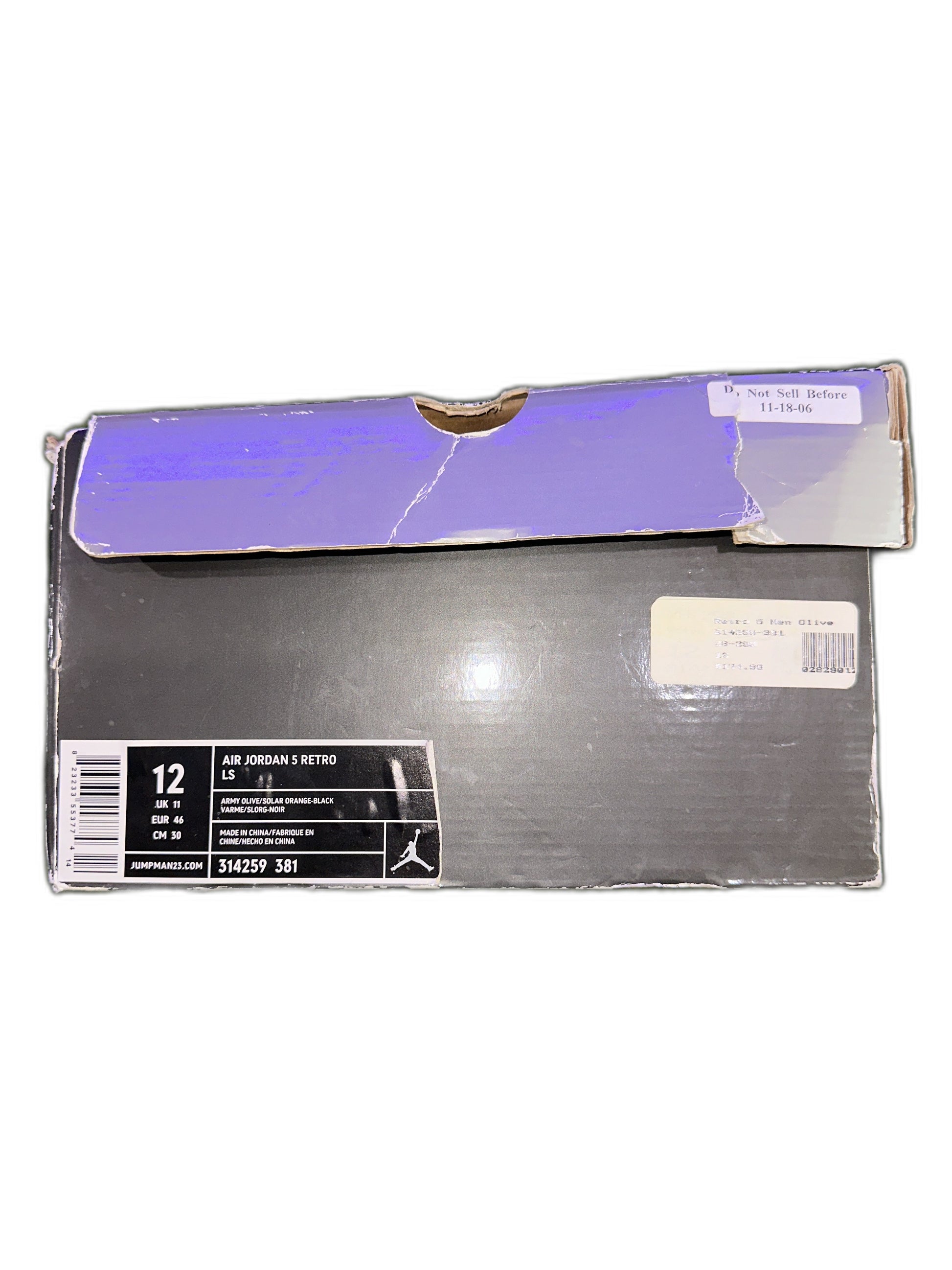 This listing is for a Jordan 5 Retro Olive from 2006, size 12 in men's sizing.