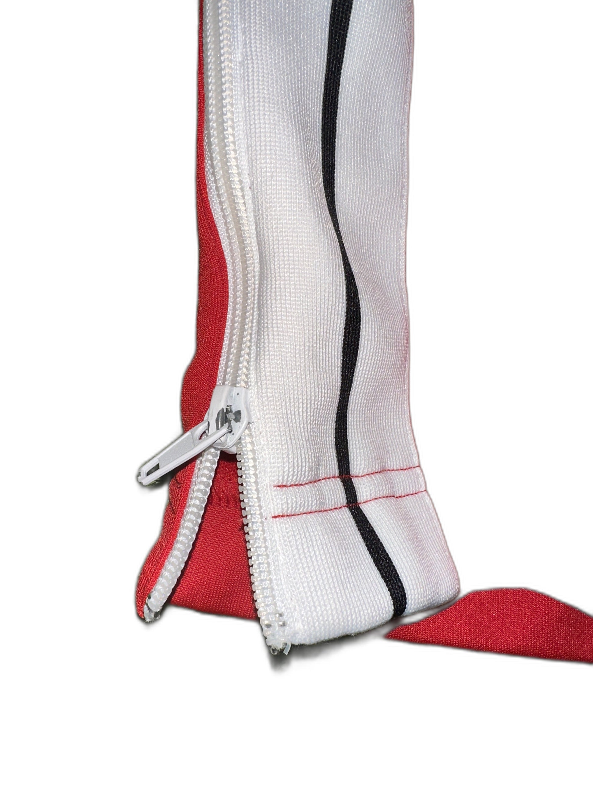 Used - good condition with signs of use on bottom zippers, slight paint wear, and small staining at the bottom of the pant legs.