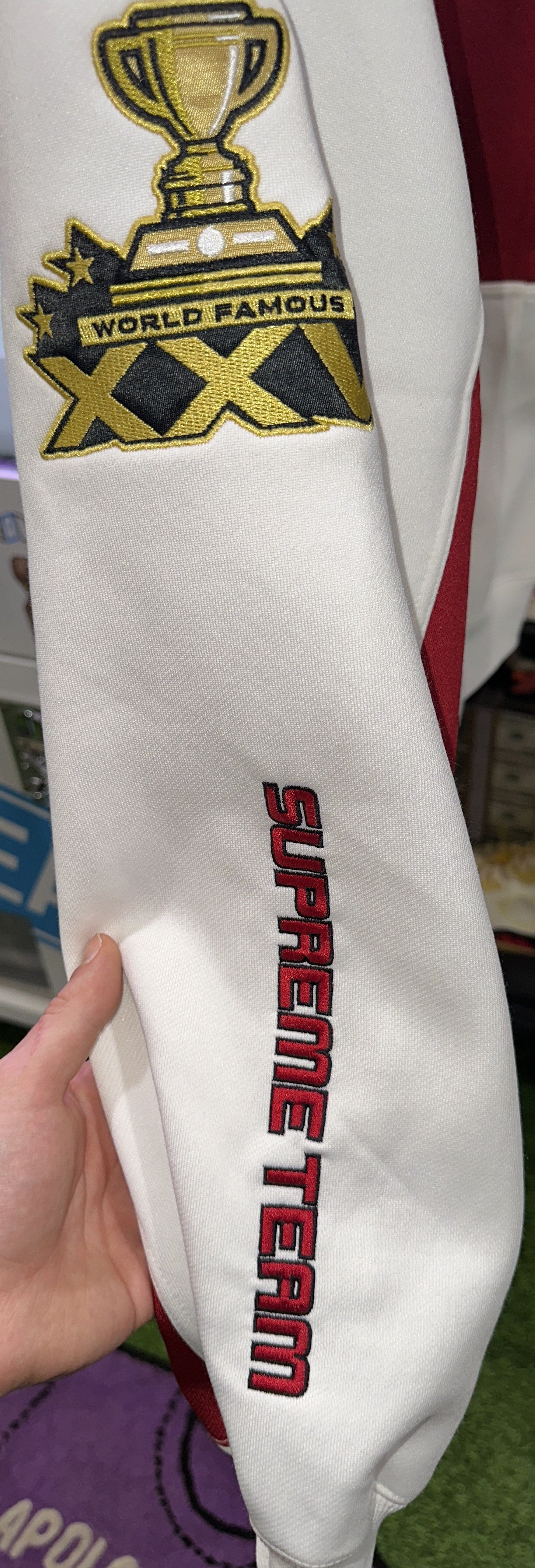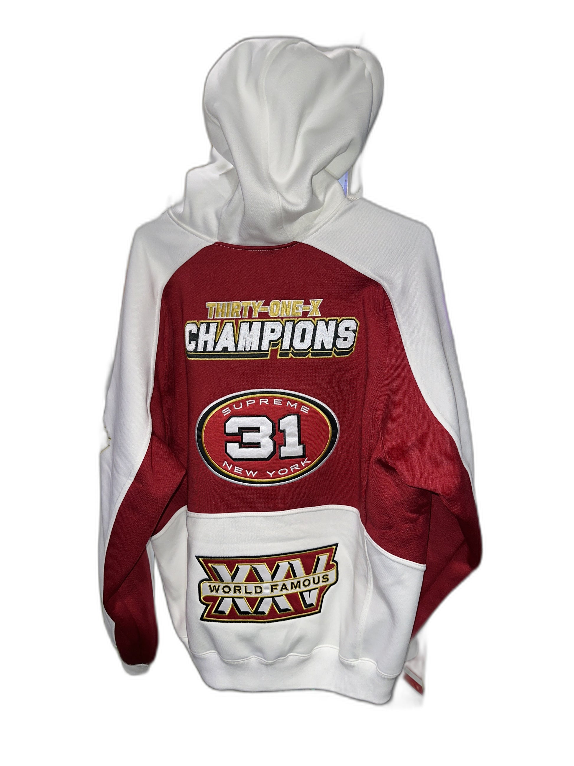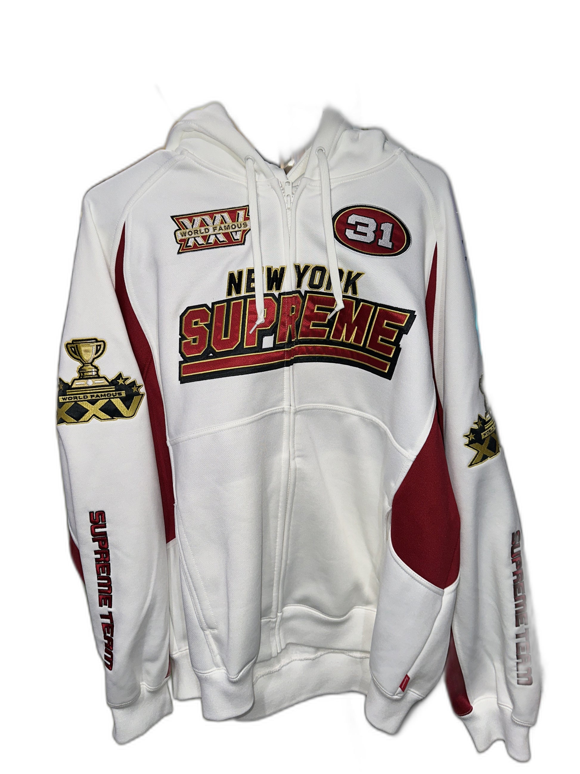 This Supreme Football Zip Up Hooded Sweatshirt (FW25) is a new item in white color.
