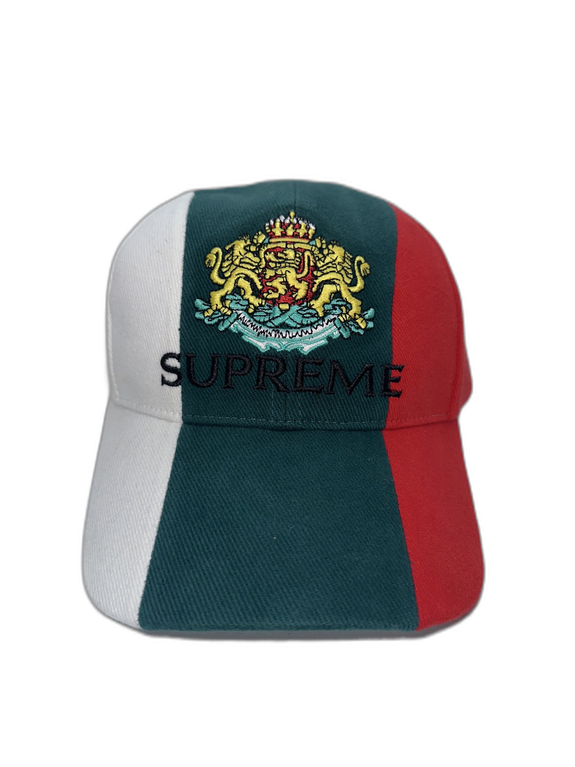 This listing is for a new Supreme Crest 6 Panel hat in a multi color scheme.