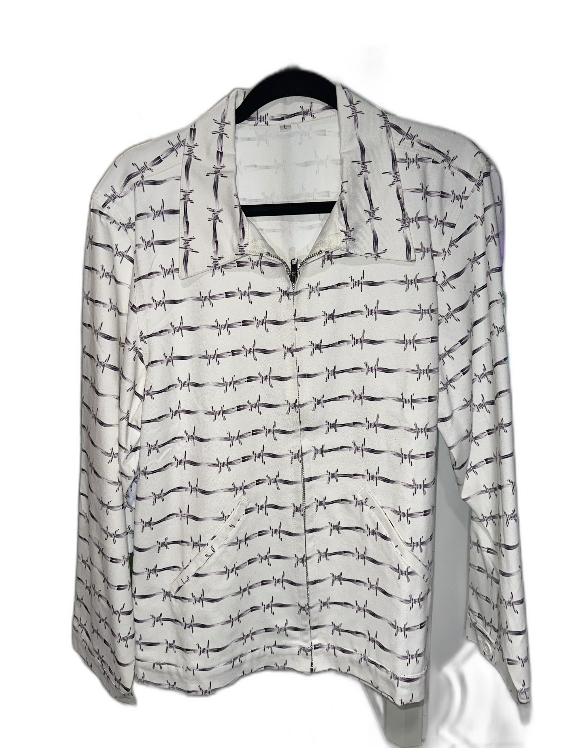 This Bravest Studios Barbed Wire Jacket is new and unworn, featuring a white color.