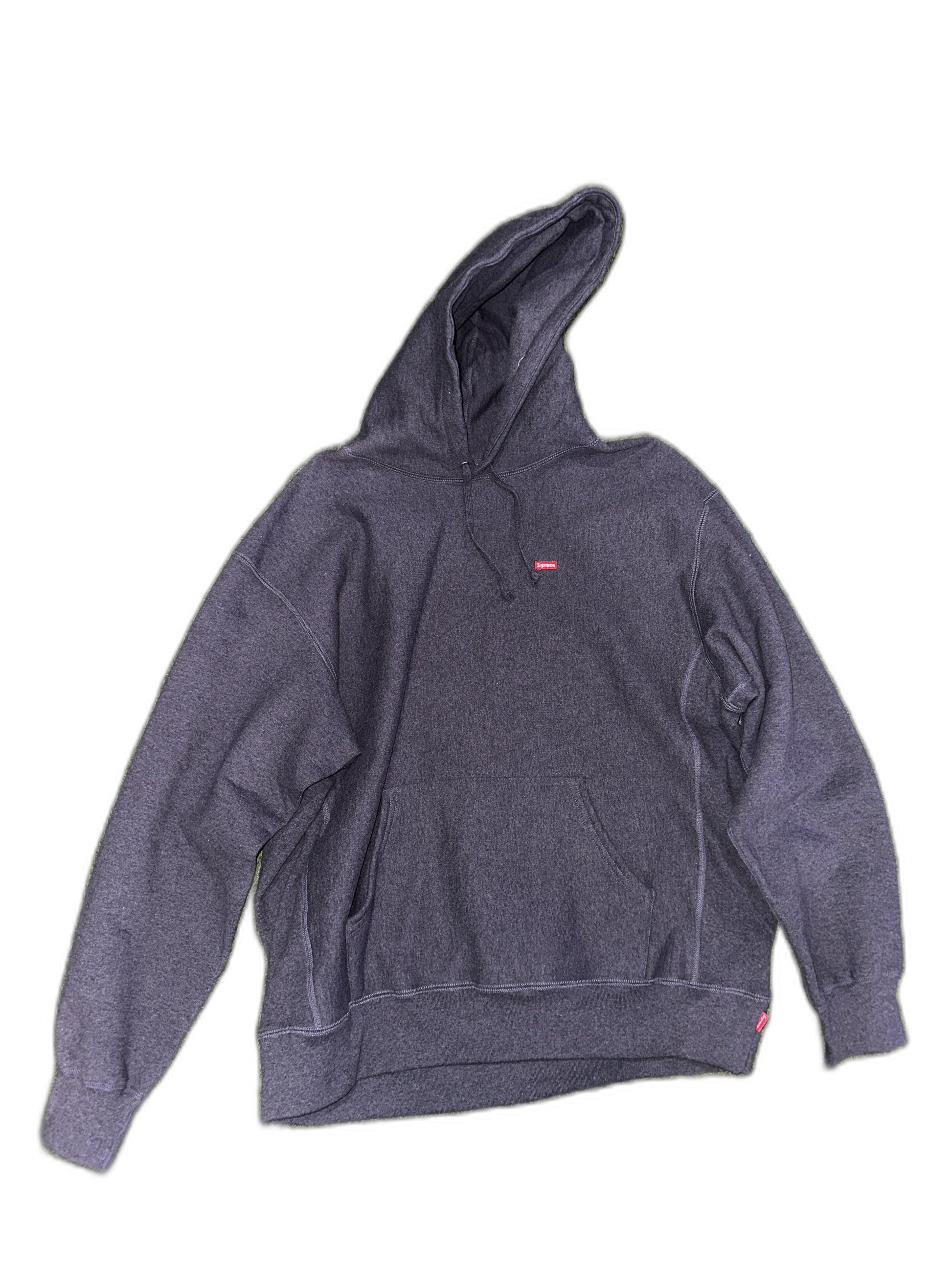 This Supreme Small Box Logo Hooded Sweatshirt (FW21) in grey is a new item. It is offered in brand-new condition.