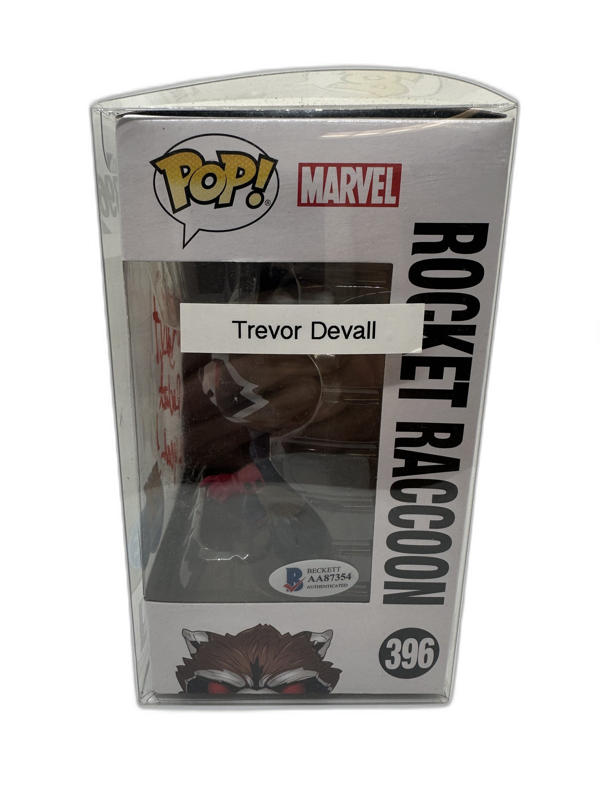 This is a new Rocket Raccoon Autographed Trevor Devall Funko POP, model #396.